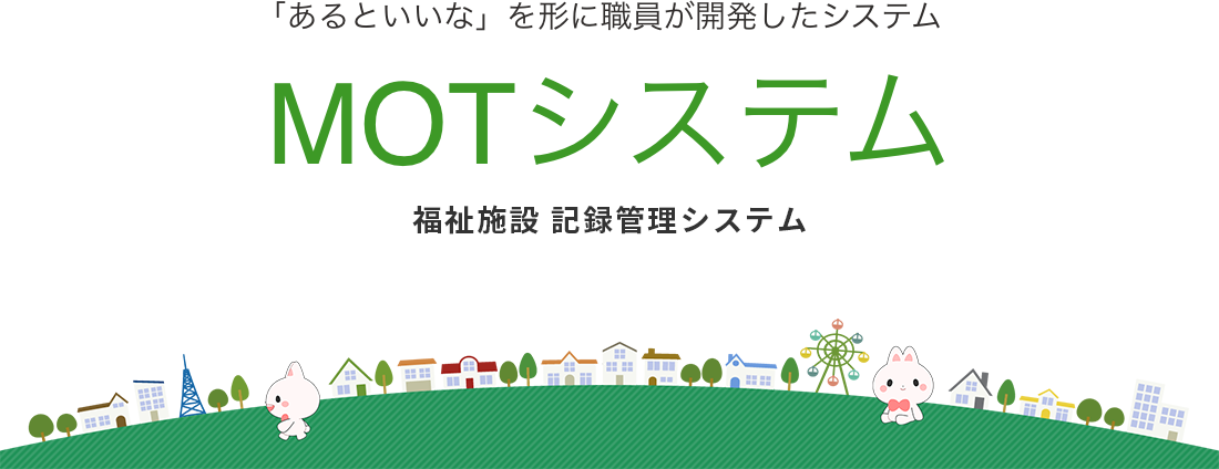 ※もっち〜とは日本福祉施設財団のイメージキャラクターとなります。弊社は日本福祉施設財団からキャラクターの使用権利をもらっております。また毎年、MOTシステムの利用料金の一部を寄付しております。